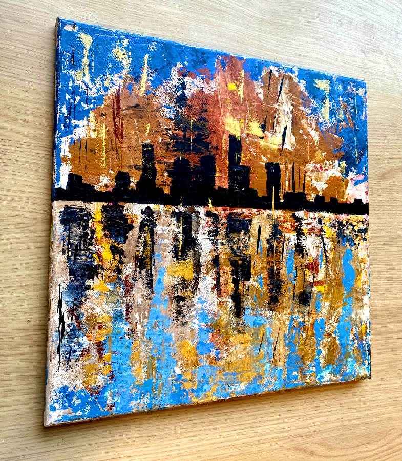 Ans heeft dit originele schilderij geschilderd met palletmessen