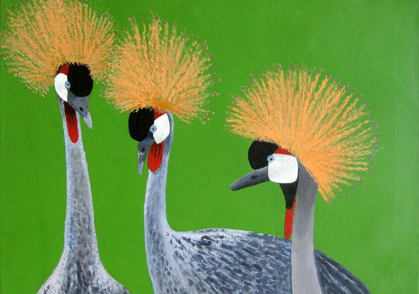 Sjef | Kraanvogels in gesprek | Acrylverf op doek
