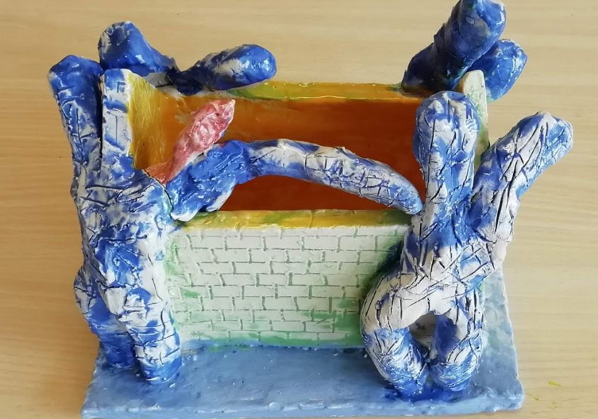 Harry | Straatje met twee figuren | Kleurkrijt op papier