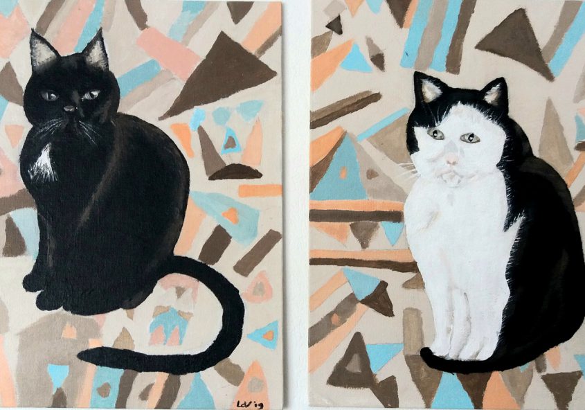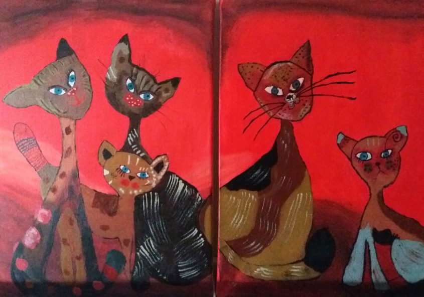 Linda | Crazy Red Cats (tweeluik) | Acrylverf op doek