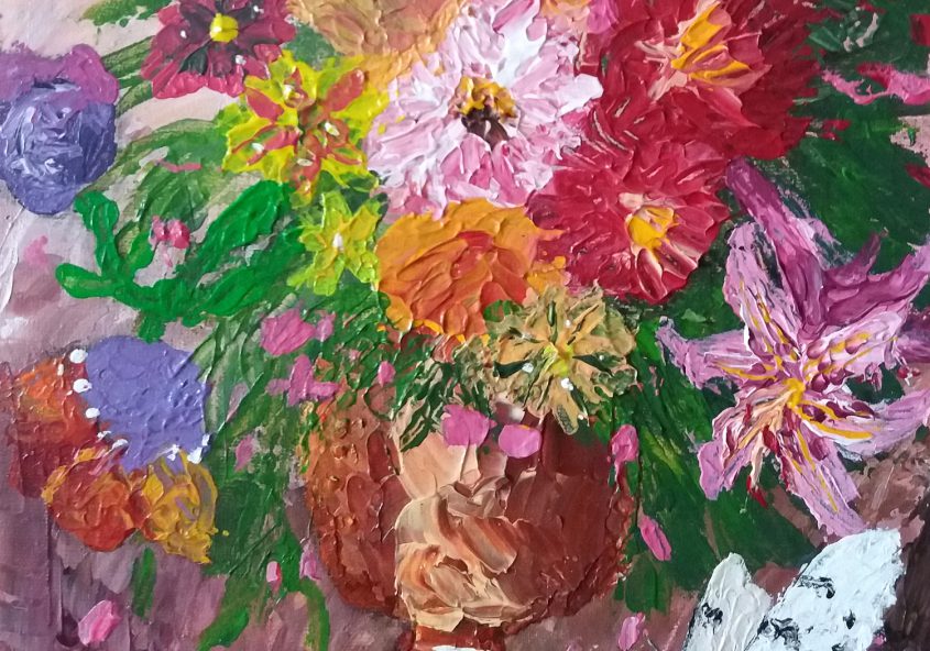 Linda | Vaas met bloemen | Acrylverf op doek
