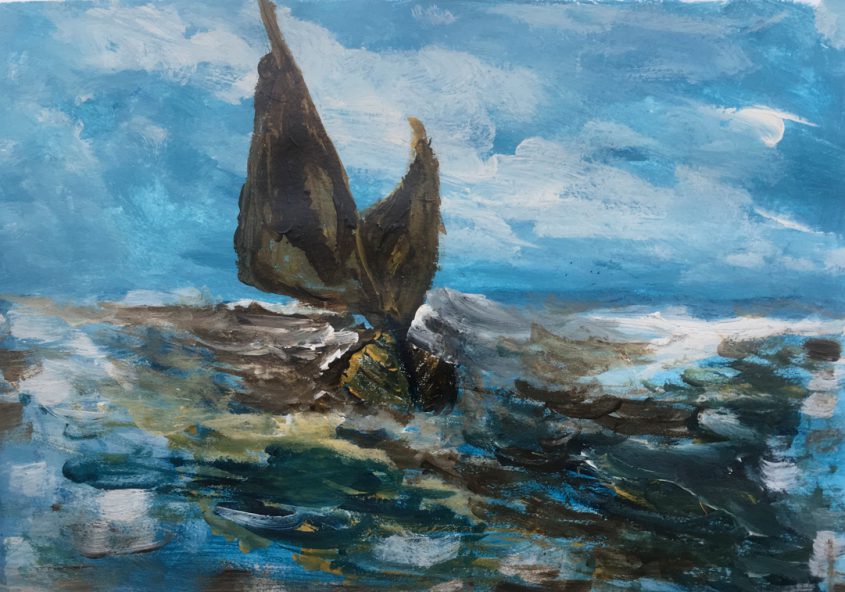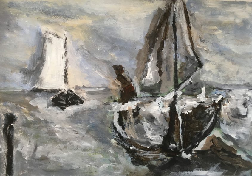 Gerrit | Zeilboot op zee | Acrylverf op papier