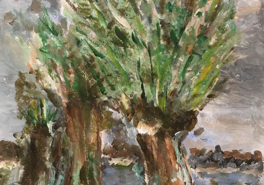 Gerrit | Wilgen aan de waterkant | Acrylverf op papier