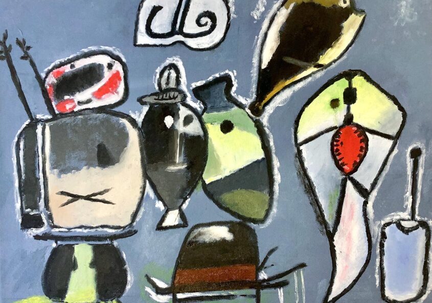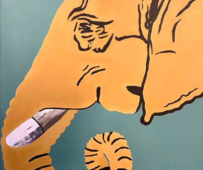 Hans | Ook teckels houden van zonnebloemen | Acrylverf op canvas