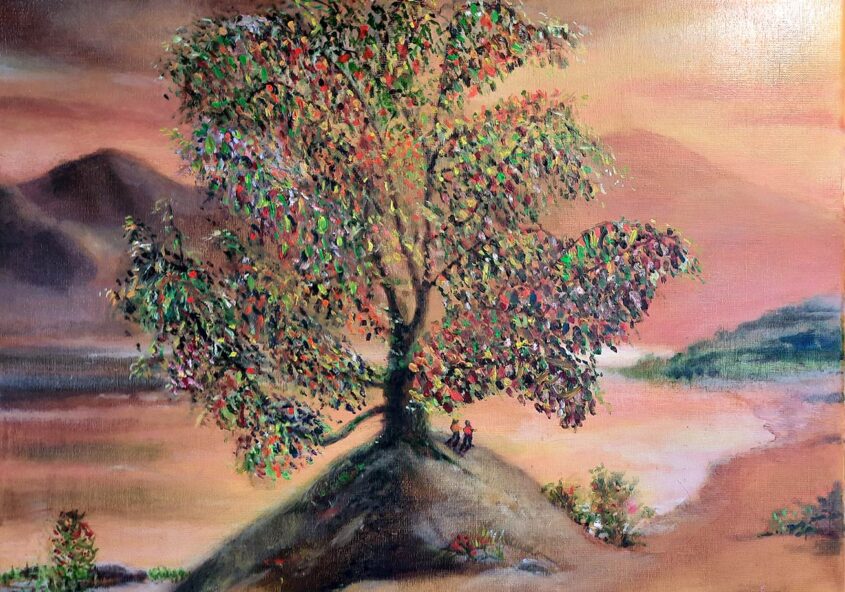 Hetty | Schoonzoon met kleinzoon | Olieverf over acrylverf op paneel