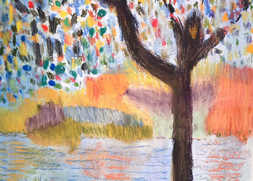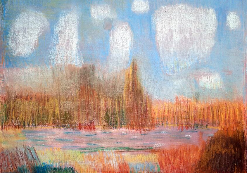 Piet | Landschap | Pastelkrijt over aquarel op doek