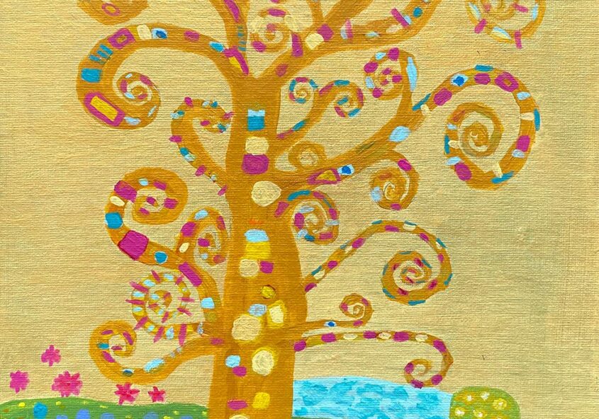 Kim | Vrije inspiratie naar Klimt | Acryl- en goudverf op paneel