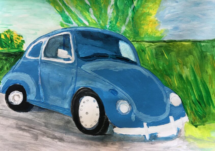 Hans | De blauwe kever van Hans 1975 | Acrylverf op papier