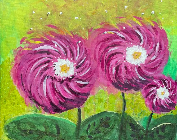 Threes | Viooltjes | Acrylverf op doek