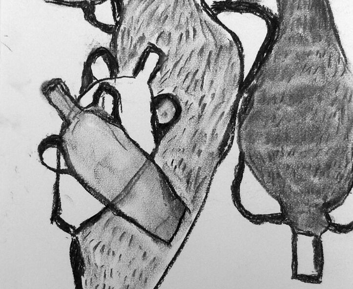 Rammy | Fles | Houtskool op papier