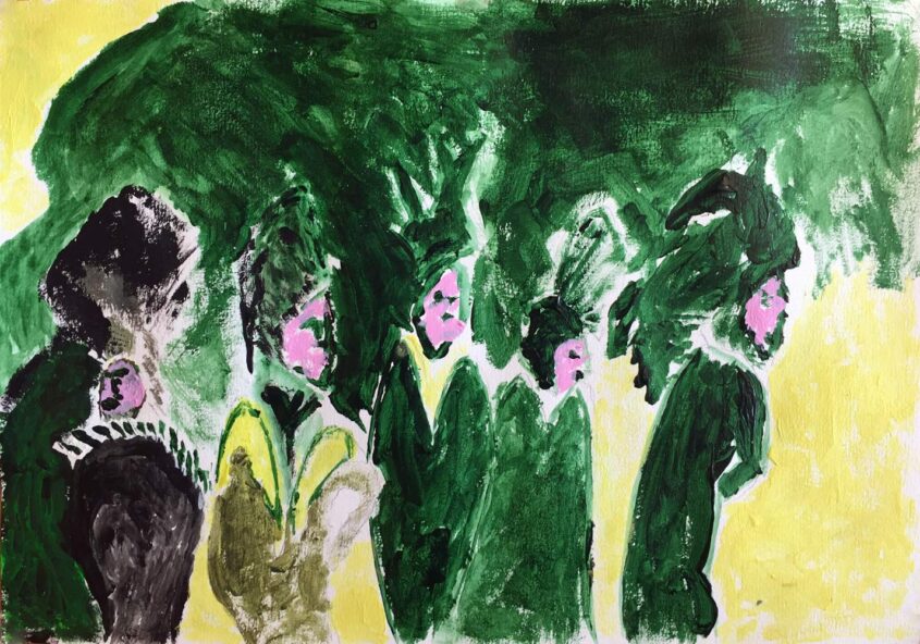 Bram | Mensen in het groen | Acrylverf op papier