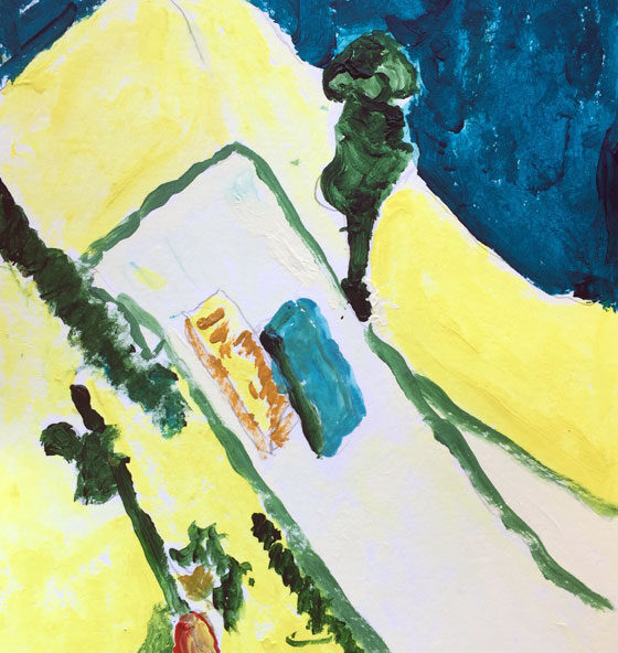 Joop | Blauwe lucht | Acrylverf op papier