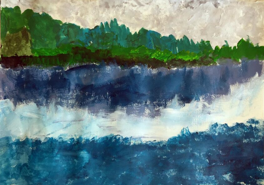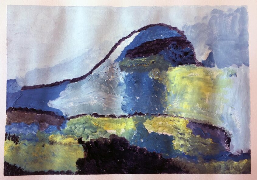 Wil | Berglandschap en water | Acrylverf op papier