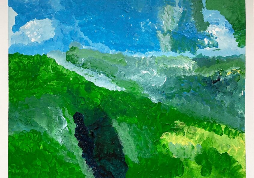 Joop | Uitzicht op een meer | Acrylverf op papier