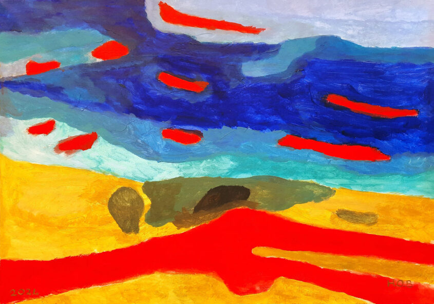 Henk | Water en zand | Oliepastel en acrylverf op doek