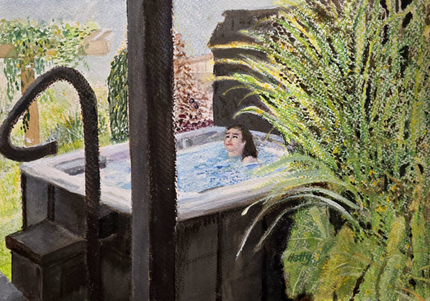 Hetty | In de Jacuzi | gemixte techniek op papier