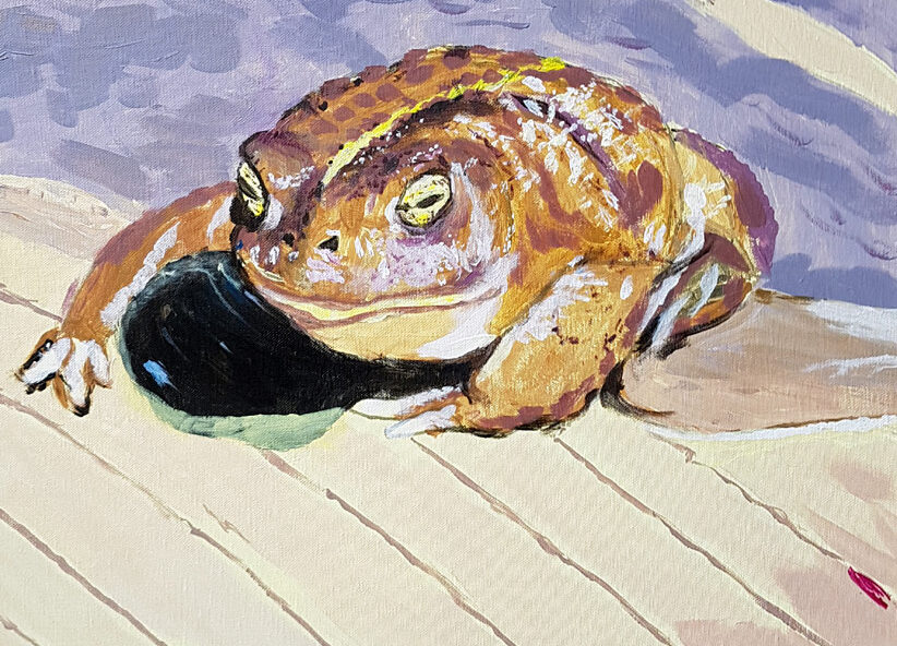 Nico | Rechtstreeppad (Epidalea-calamita) rennend | Acrylverf op doek
