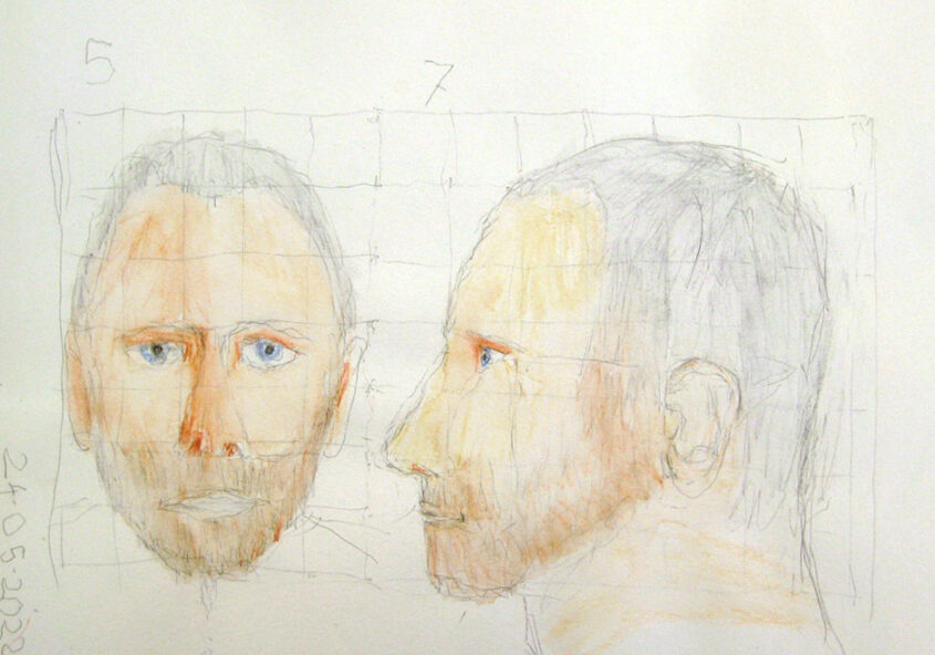 Kees | Zelfportret | Potlood en aquarelpotlood op papier