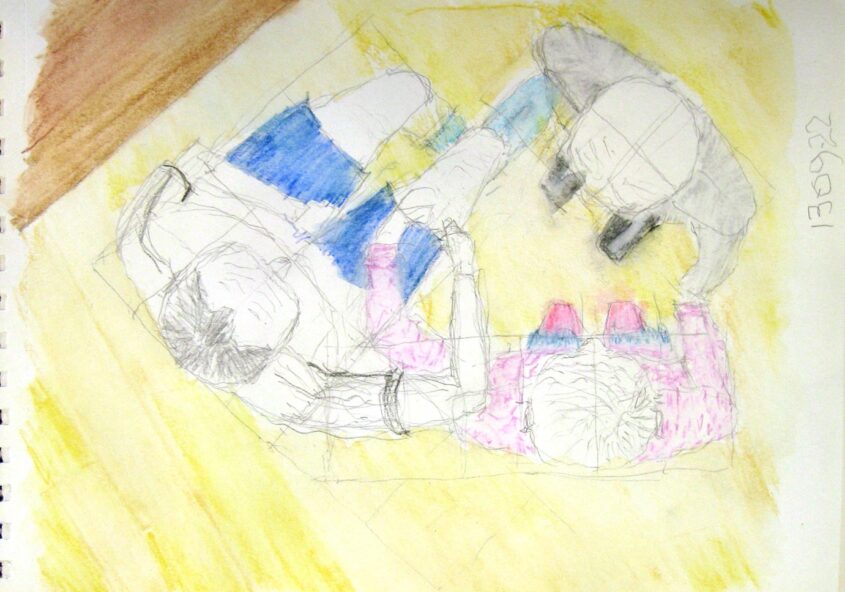 Kees | Bovenaanzicht | Potlood en aquarelpotlood op papier