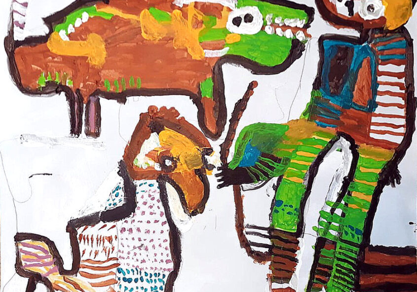 Kees van R. | De haan kraait in de morgenstond | Acrylverf op doek