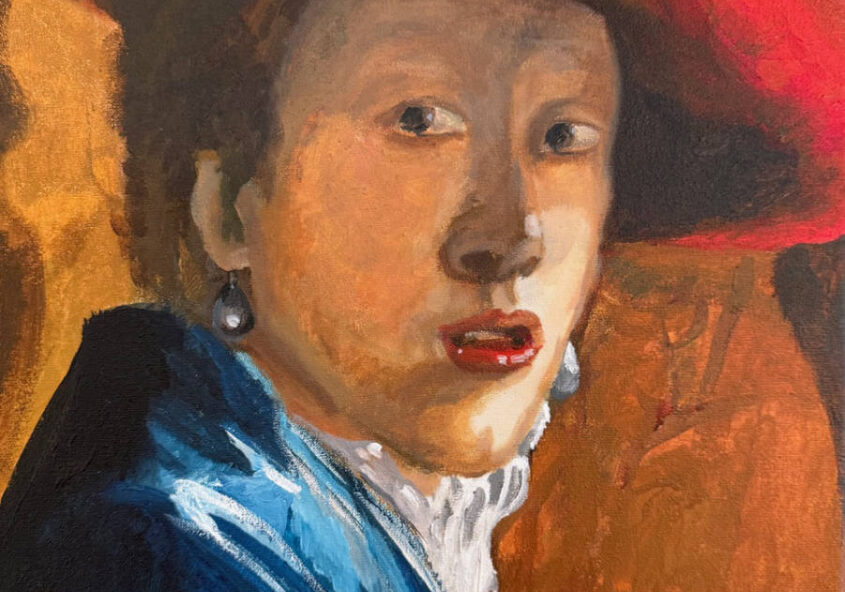 Karim | Vrouw met rode hoed – naar Vermeer | Acrylverf op doek
