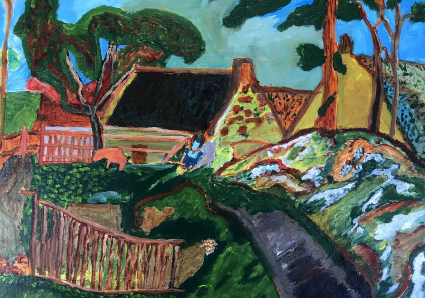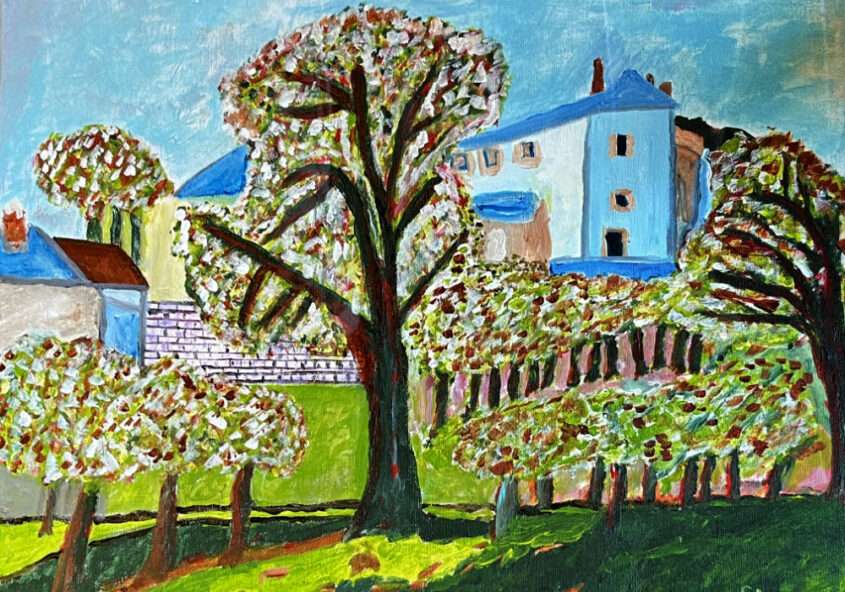 Pannus | Huis Met Boomgaard | Acrylverf op doek