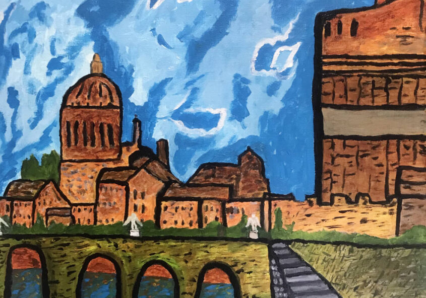 Pannus | Romeinse Brug Met Engelen | Acrylverf op doek
