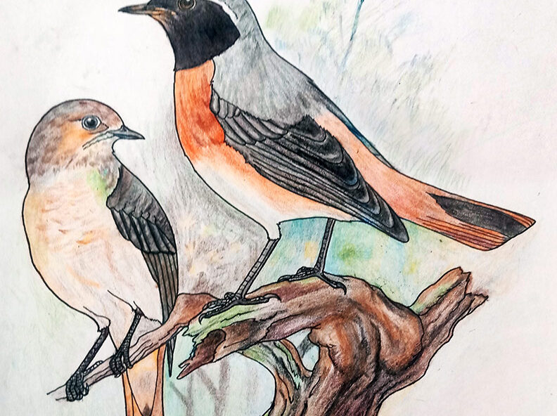 Corrie | Gekraagde roodstaart | Aquarelpotlood op papier