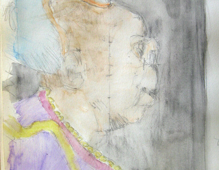 Kees | vrouw met misvormd gezicht | kleurpotlood op papier
