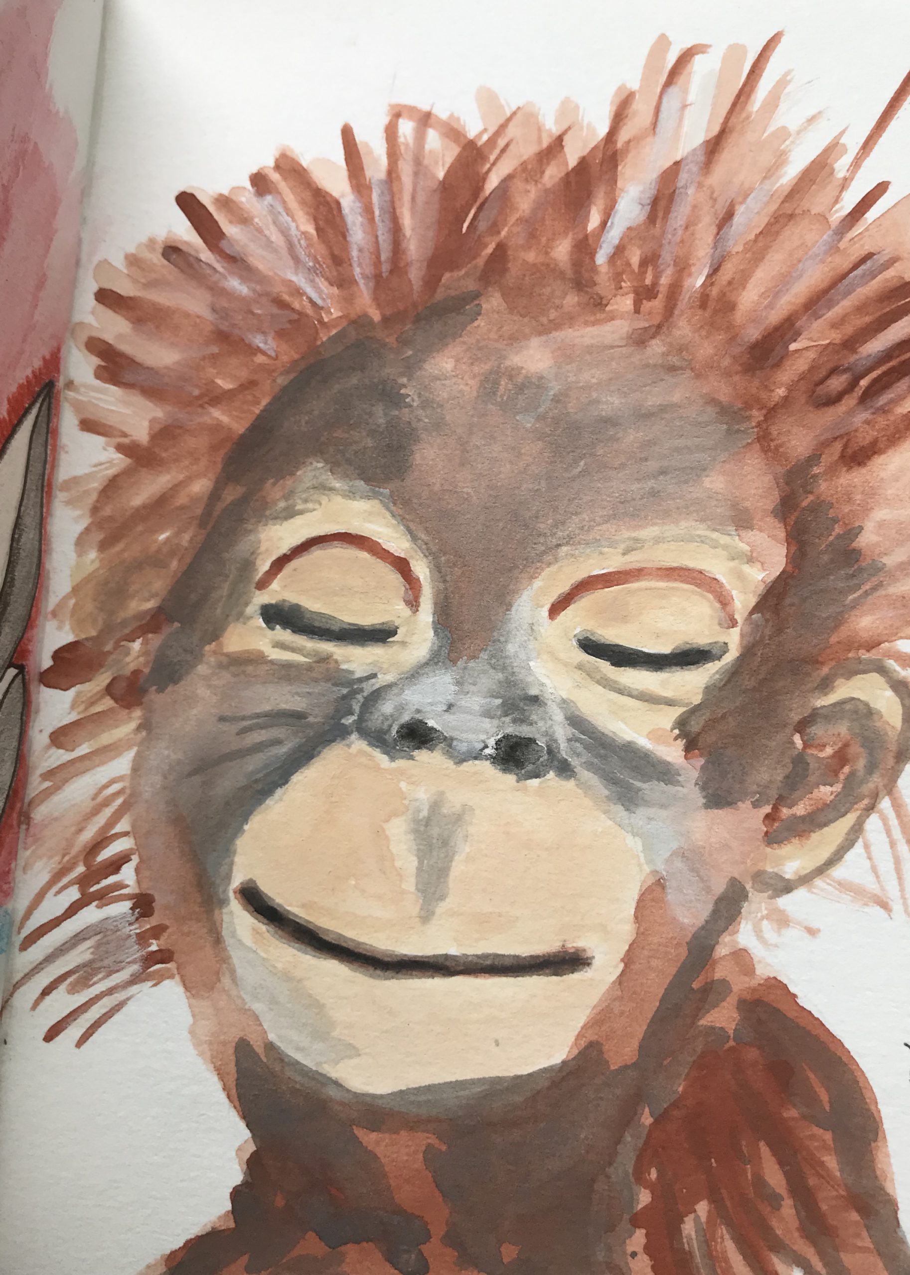 Chang-Ta | Aapje | Aquarel en gemengde technieken op papier Bekijk meer werk van Chang-Ta Apen Atelier Eindhoven Chang-Ta Dieren Portret