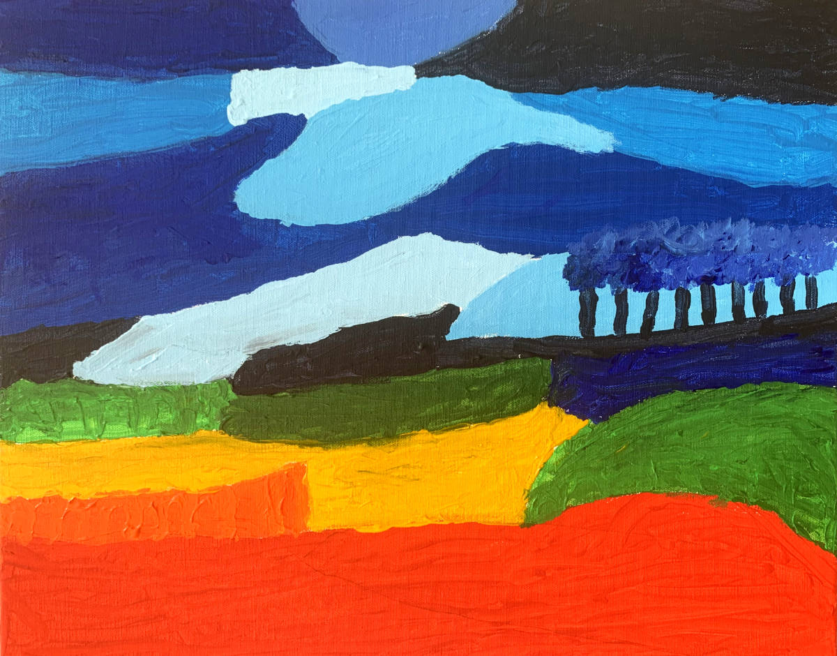 Malgosia | Bomenrij | Acrylverf op doek Bekijk meer werk van Malgosia Akkers Atelier Utrecht Bomen Landschap Malgosia