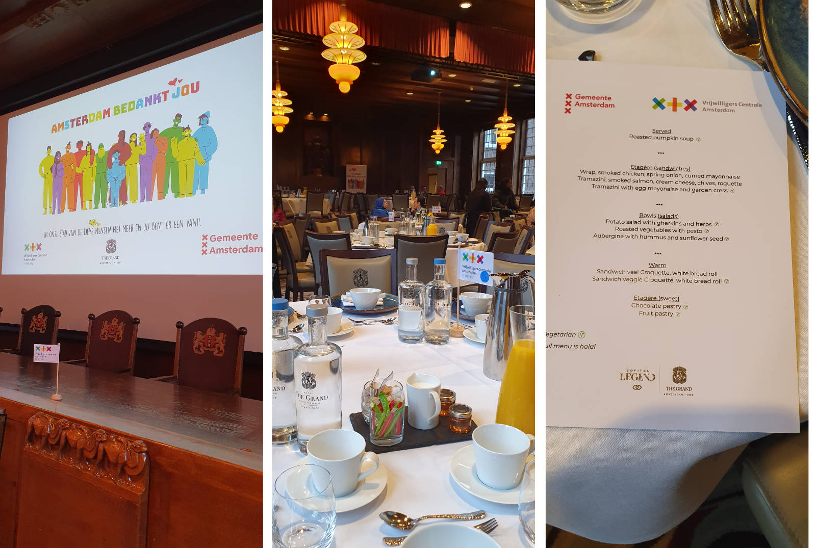 7 December was het weer Nationale Vrijwilligersdag. Op deze dag bedanken wij als stichting nog een keer extra onze vrijwilligers. Ook gemeente Amsterdam wil extra aandacht schenken aan de fantastische en vaak broodnodige inzet van zoveel vrijwilligers. Daarom hadden ze voor een groep van 200 vrijwilligers een geweldige lunch aangeboden aan een selectie van de ruim 280.000 vrijwilligers die zich inzetten in Amsterdam.