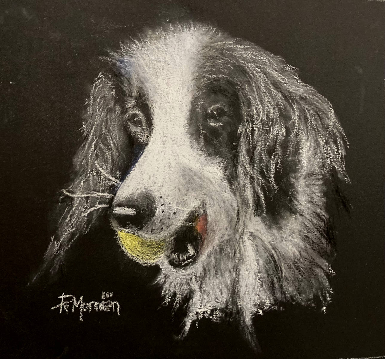 Rob M | Moos | Pastelkrijt op papier Bekijk meer werk van Rob M (Amsterdam) Atelier Amsterdam hond Moos Rob Amsterdam2