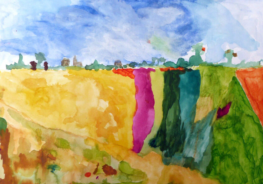 Gerard Jos | Landschap | Aquarelverf en krijt op papier