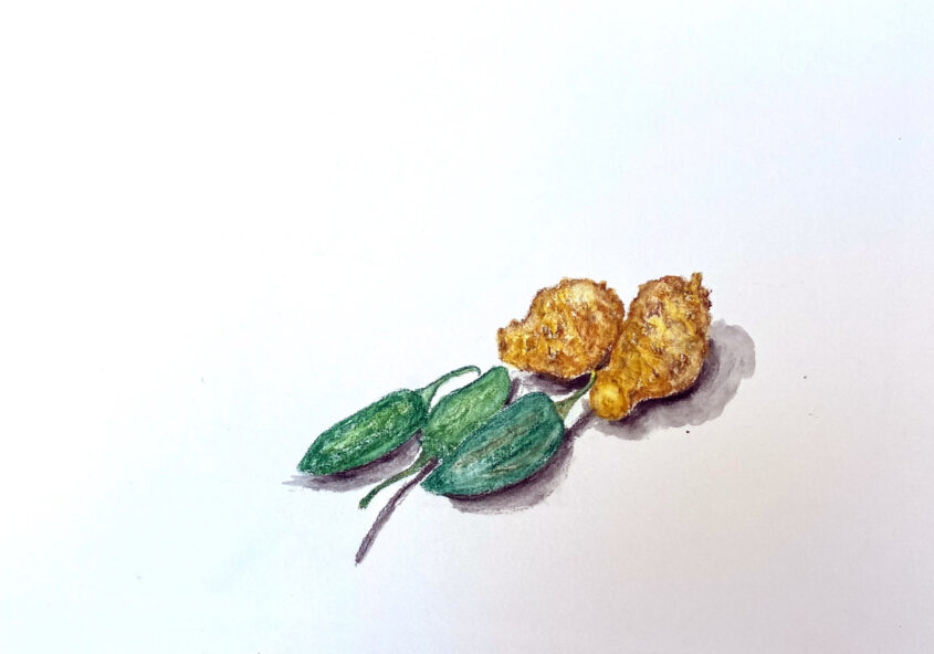 Michael | Aardperen en jalapenos pepers | Aquarelpotloden op papier