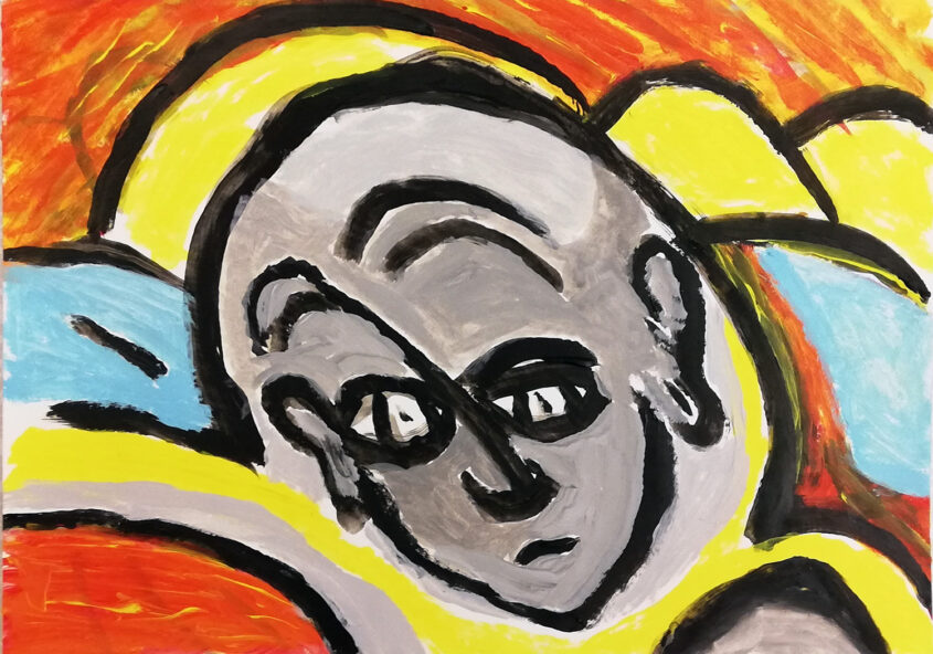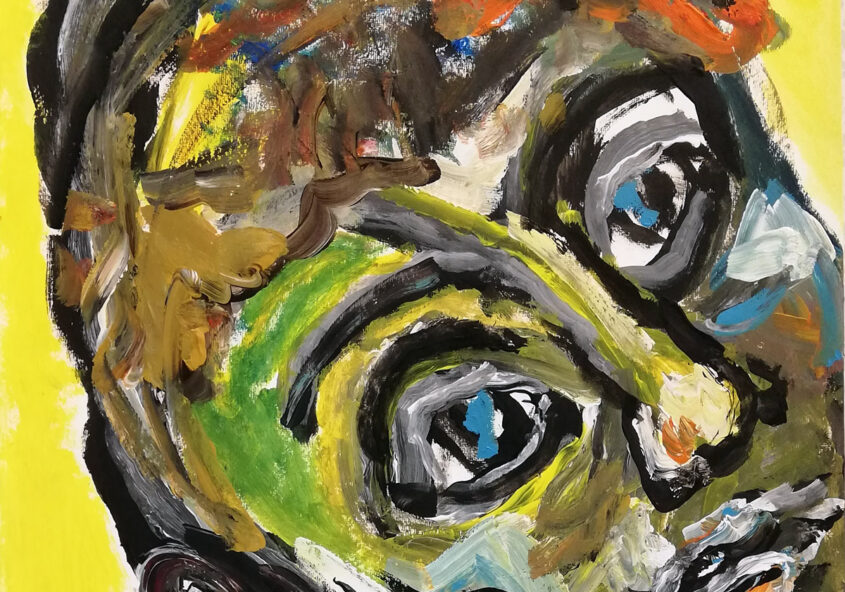 Herman | Portret met geel jasje | Acrylverf op papier