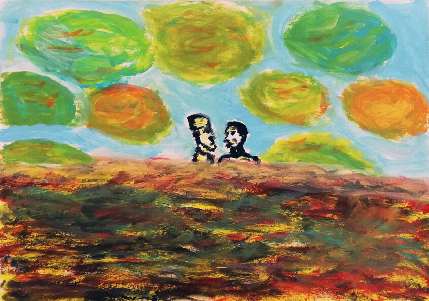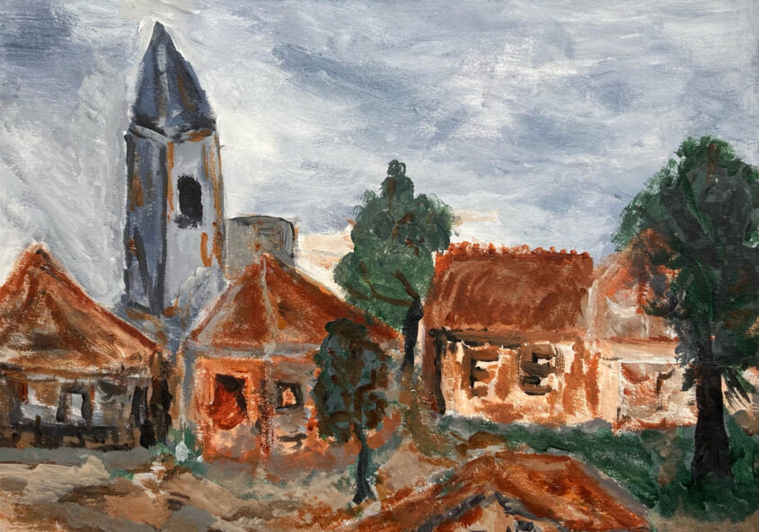 Gerrit | Dorpsgezicht | Acrylverf op papier