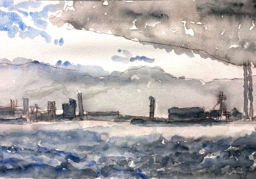 Markus | Gezicht op Tata in IJmuiden | Aquarel