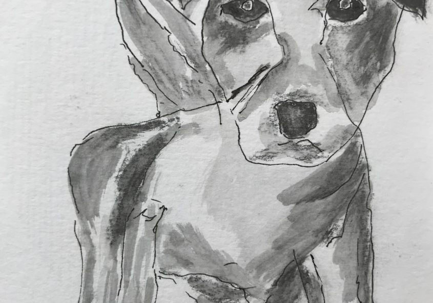 Chang-Ta | Hond | Aquarel en gemengde technieken op papier