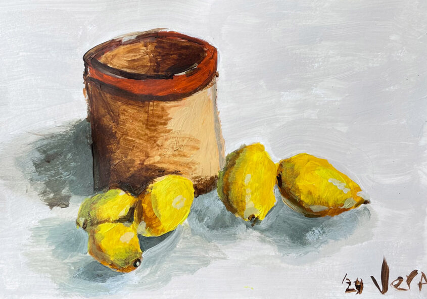 Vera | Stilleven met citroenen | Acrylverf op papier