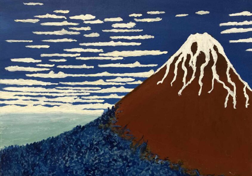 Corrie | Japanse berg | Nat-in-nattechniek met aquarelverf en daarna aquarelpotloden op papier