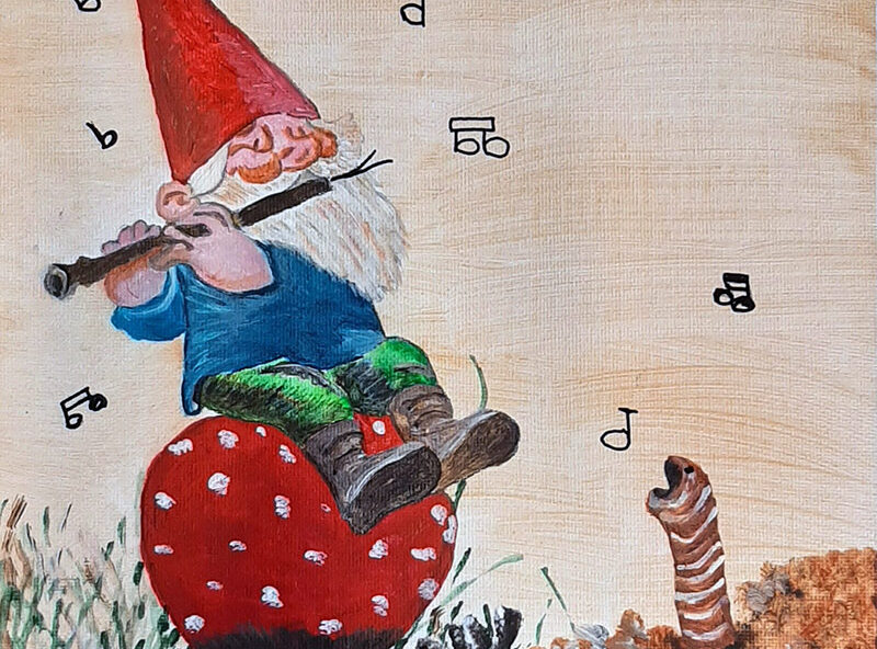 Yvonne | Fluitende kabouter | Acrylverf op canvasboard
