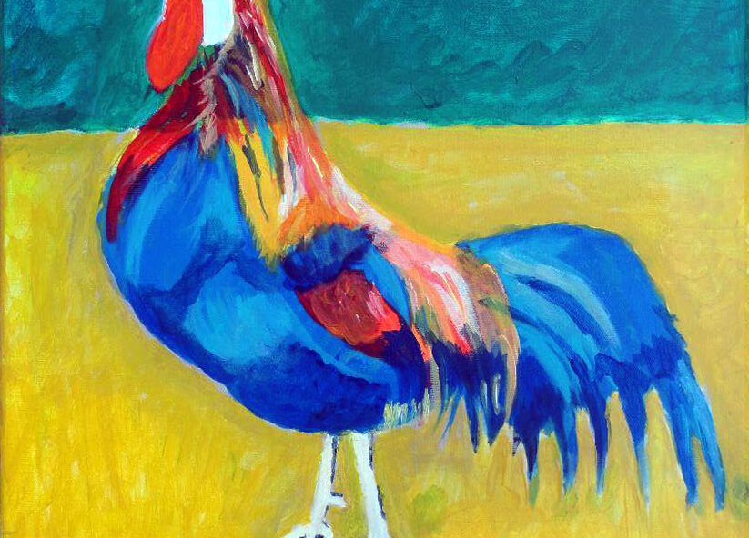 Kees van R. | De haan kraait in de morgenstond | Acrylverf op doek
