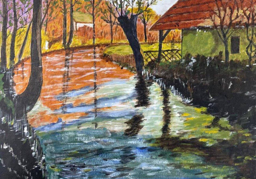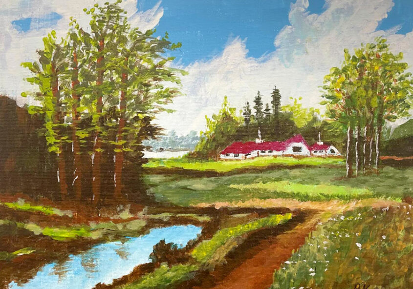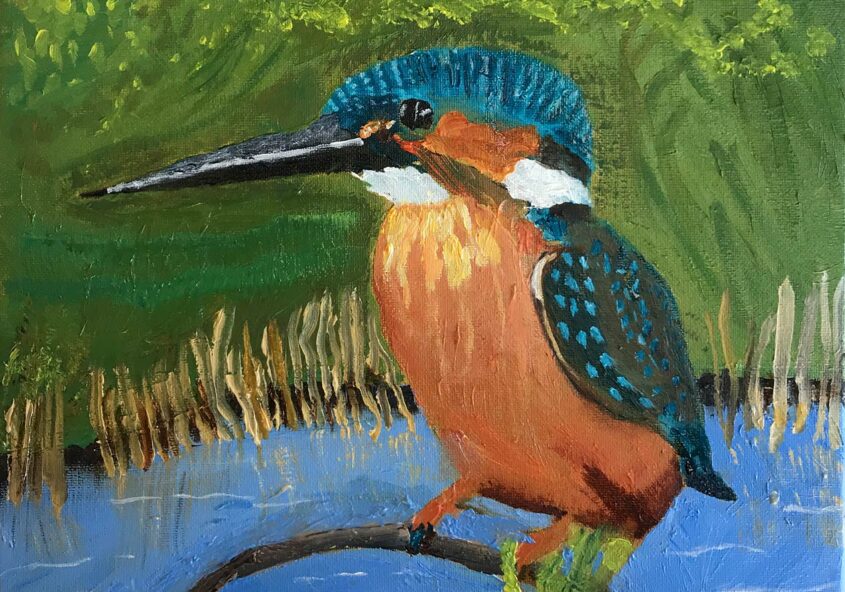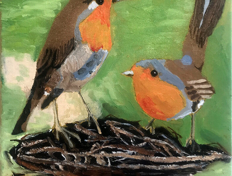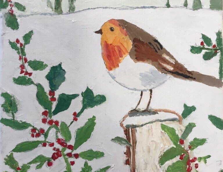 Peter | roodborstje in de sneeuw | acrylverf op doek