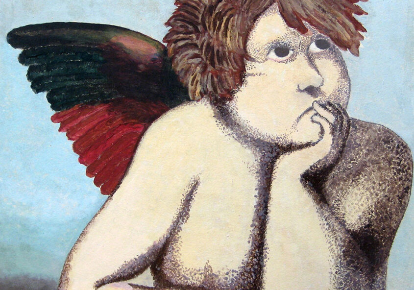Sjef | Met hemelse blik | Acrylverf op plafondplaat