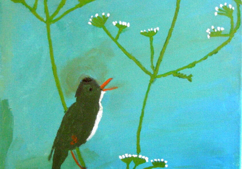 Geert | Rietzanger op Fluitekruid | Acrylverf op doek