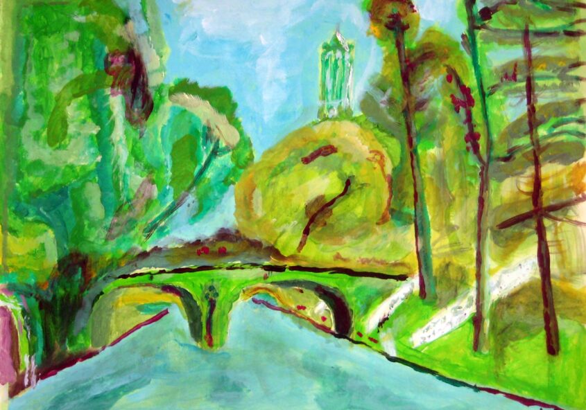 Kees van R. | Brug over de Oudegracht | Acrylverf op papier