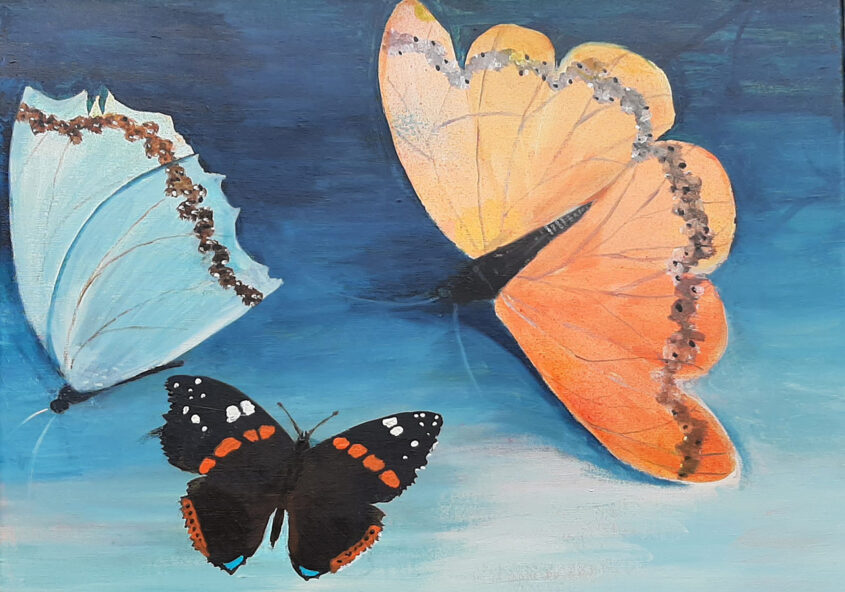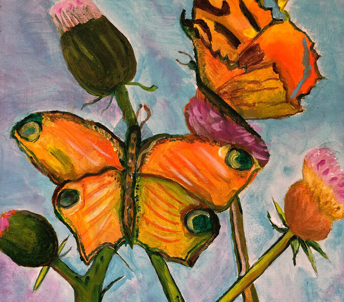 Linda | Vlinders in de bloemenweide | Acrylverf op doek