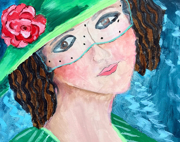 Sjef | Vrouw met rood hoedje | Acrylverf op doek
