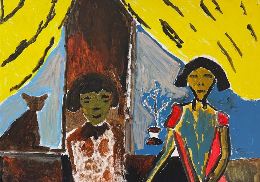 Bram | Twee dames | Acrylverf op papier